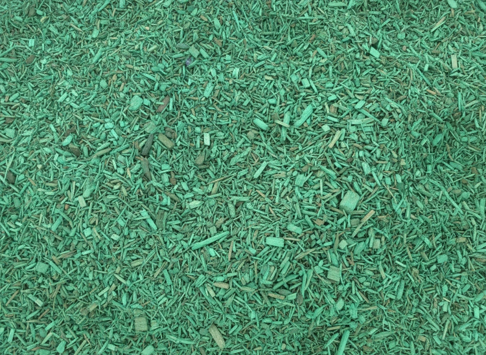 El material pasa por un proceso de selección, trituración y acabado, lo que permite obtener un tamaño consistente y una apariencia homogénea. El color se logra mediante una pintura desarrollada específicamente para adherirse a la madera, no tóxica y segura para su uso en jardinería, con una duración de hasta 12 meses en condiciones normales de exterior.